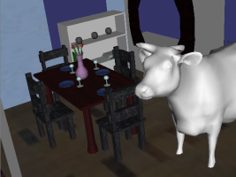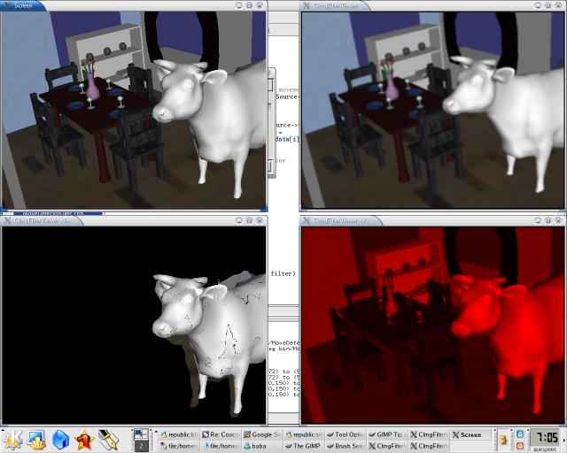 . - All the objects (building, cow, camera, filter) can be loaded from a console, which is not convenient. I will ameliorate it.