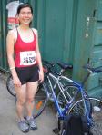 The first 10 miles were quite annoying. Imagine 25,000 cyclists launched on the road in just 3 hours... That's a pretty nice mess, believe me ! We had to stop very often and even to push the bike in the first slope... Little by little things went better. The sun was shining (over 30°C), roads started to melt and skin to get red. The route was slightly hilly all the way long and there was a very nice steep uphill portion at the end, frightening people in advance but that was only psychological, of course ;).